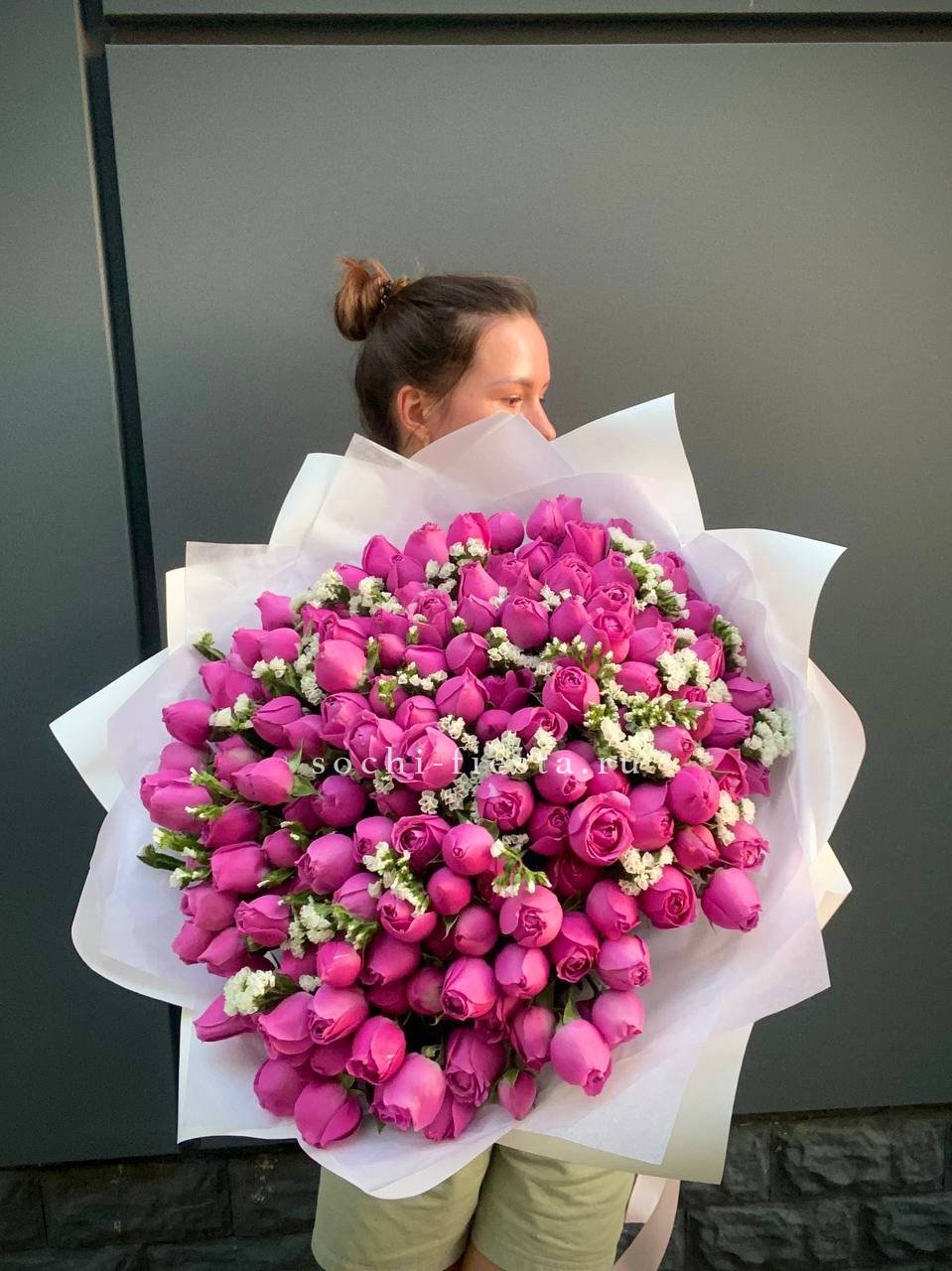 Мы работаем только со свежими цветами — букеты радуют от 7 до 14 дней и дольше при правильном уходе.