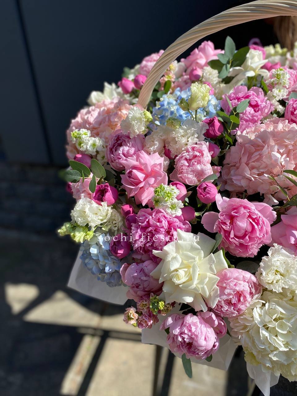 Настоящий цветочный фейерверк в стильной коробке! Эта пышная и многосоставная композиция притягивает взгляды богатством форм и оттенков — от кремового и персикового до насыщенного розового и белого. Это не просто цветы, а целая история о радости, празднике и восхищении. Подарок, который гарантированно произведет яркое впечатление и останется в памяти надолго.