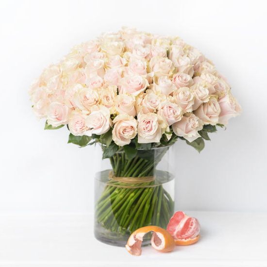 Розовые розы собраны плотной полусферой, где каждый бутон раскрывается навстречу свету. Диантусы добавляют воздушности, а эвкалипт мягко обрамляет композицию. Букет, который говорит без слов.