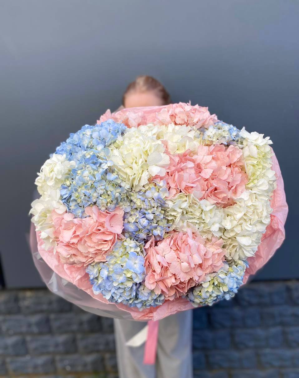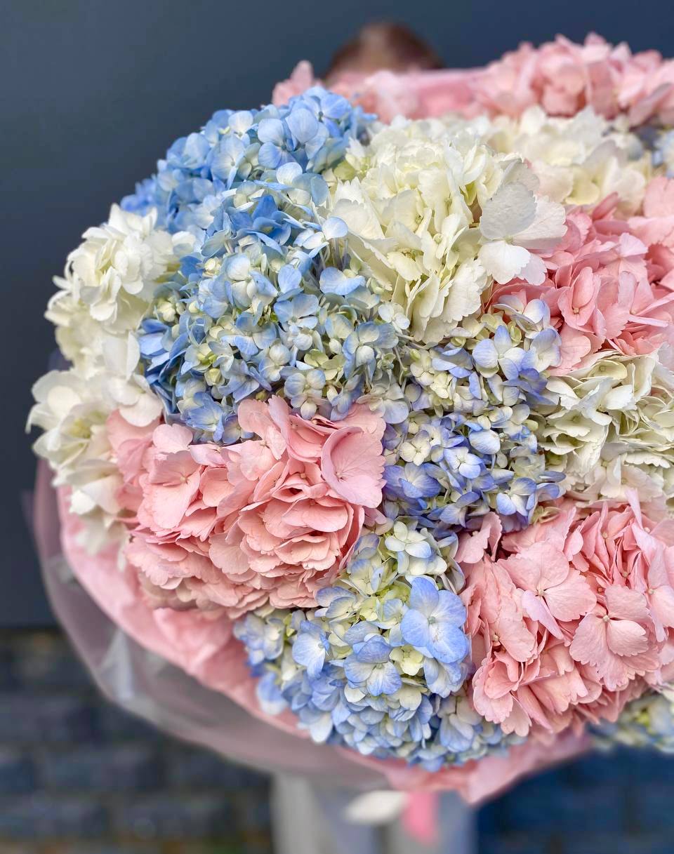гортензия- 29 шт., дизайнерское оформление По желанию заказчика, композицию можно оформить в корзину.