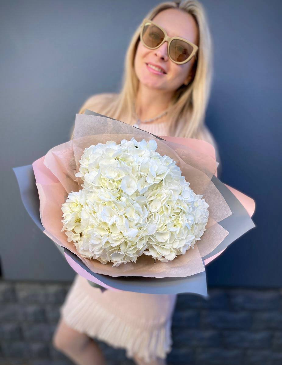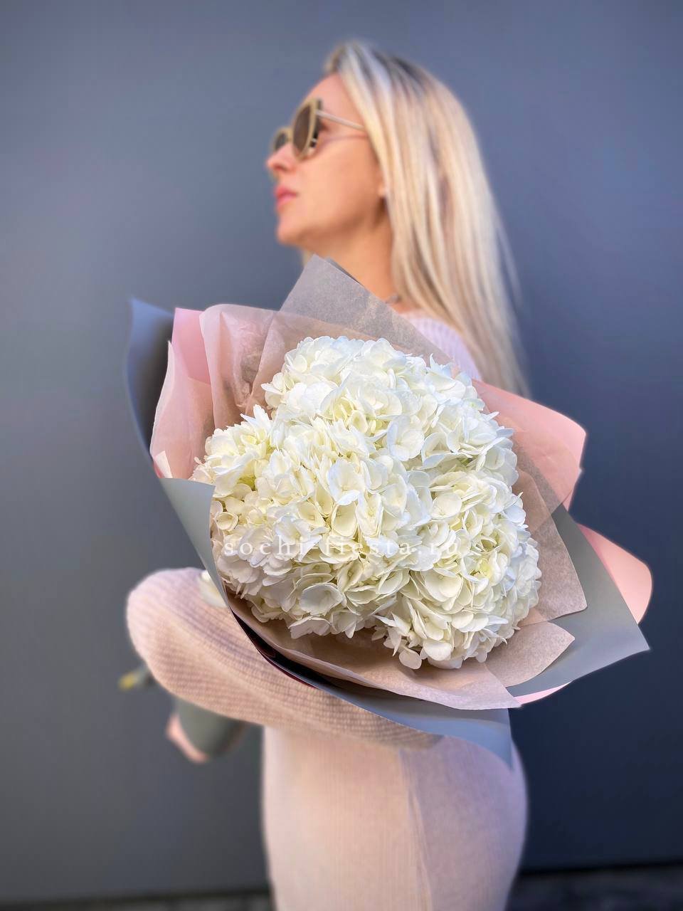Для заказа товара "Букет из трёх белых гортензий" с доставкой в Нальчике нажмите в корзину