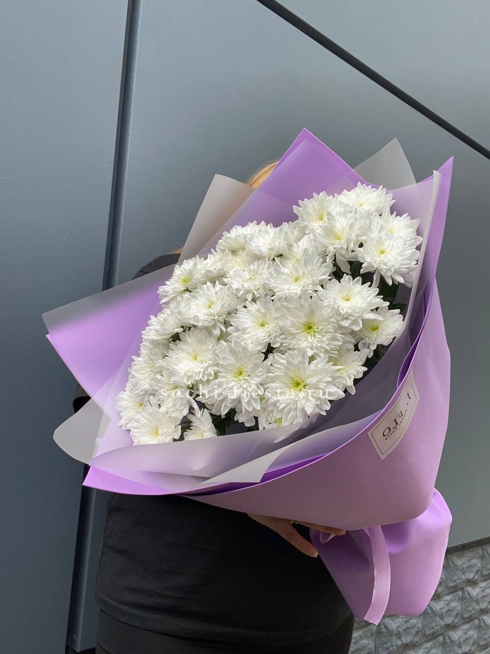 хризантема кустовая - 9 шт., лагурус, фоамиран, пленка,  лента.
