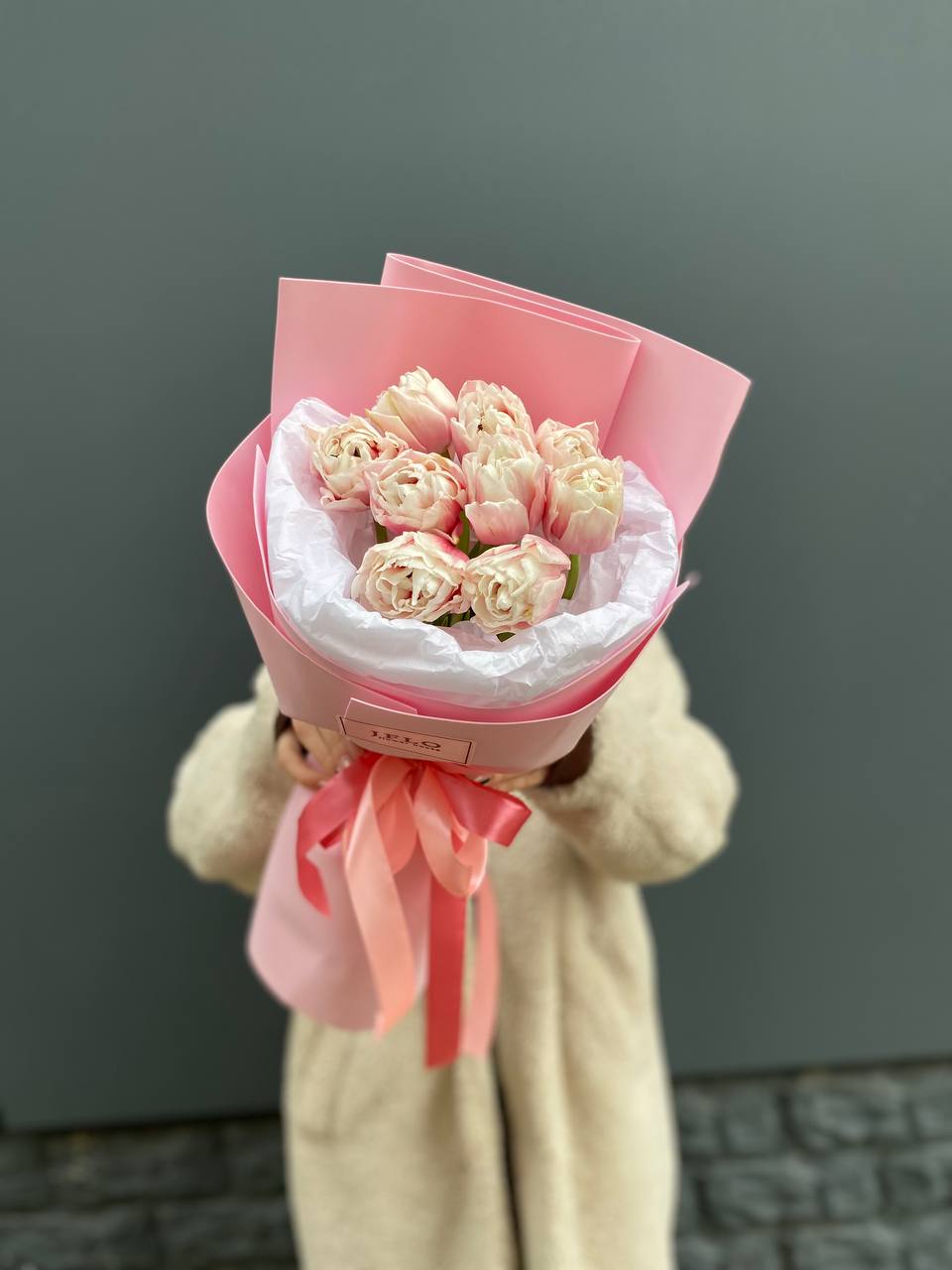 нежные тюльпаны в розовом оформлении.