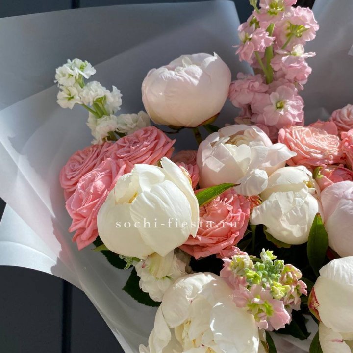 Материал авторских букетов в Нальчике определяется доступными региональными поставками. David Austin розы через московские аукционы. Ранункулюс и анемоны в сезон. Пионы в мае-июне. Нигелла, дельфиниум, клематис в летний период. Осенью — анемоны, физалис, амаранто. Зимой — орхидеи, антуриум. Флорист строит авторский букет из редкого и сезонного материала, доступного в регионе.