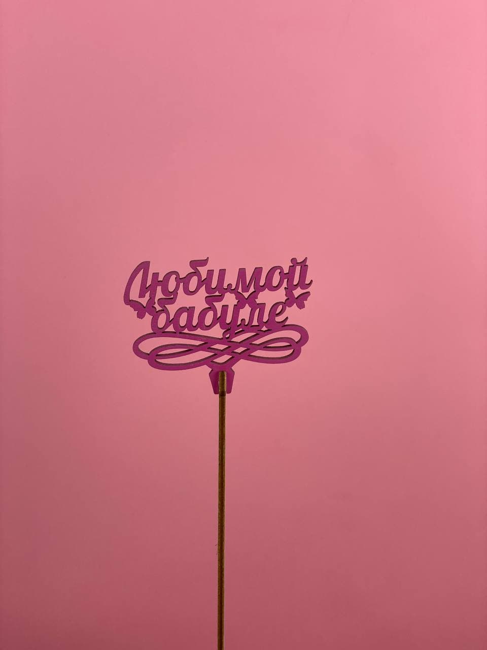 деревянный топпер. Может быть установлен в букет или композицию. Фактический внешний вид топпера может иметь незначительные отличия. Может быть заказан только совместно с букетом или цветочной композицией.