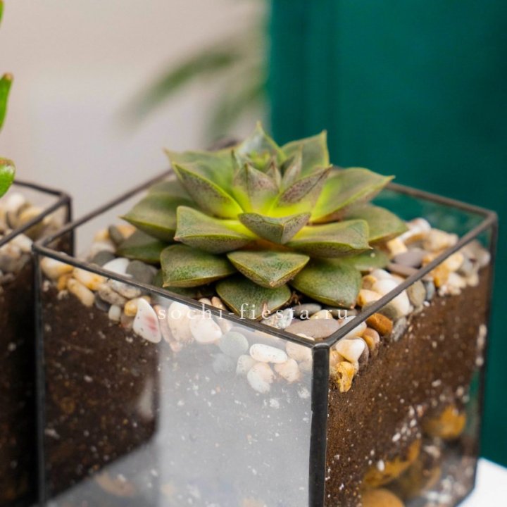 Растения в кашпо, сделанные вручную из стекла в технике Тиффани: суккуленты, мирсина, орхидея, денежное дерево, фикусы, каланхое, замиокулькасы, спатифиллумы