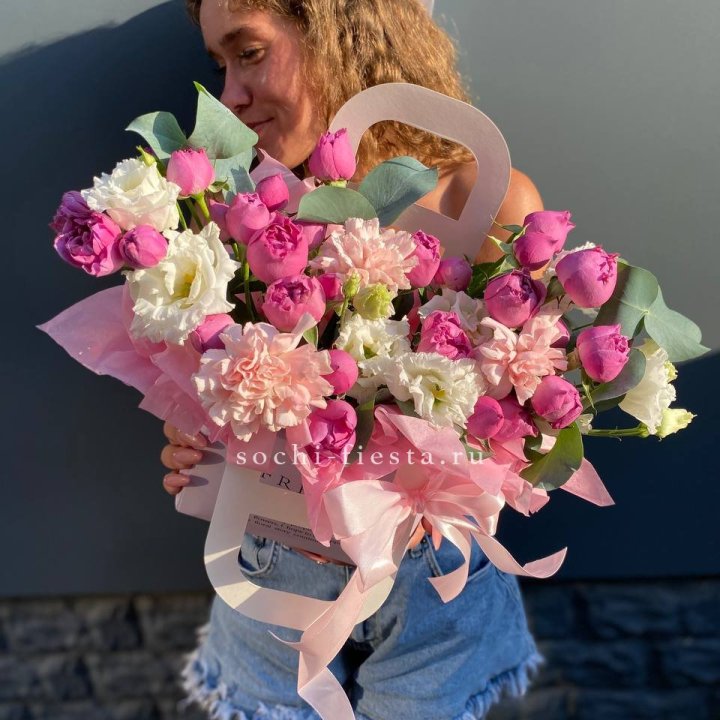 Размер выбирается по повод. Коллеге в Нальчике — M или L. Юбилей родителей — XL. Выписка из роддома — L в пудровой палитре. Корпоративный юбилей — XXL. Романтический подарок — M или L в яркой палитре.