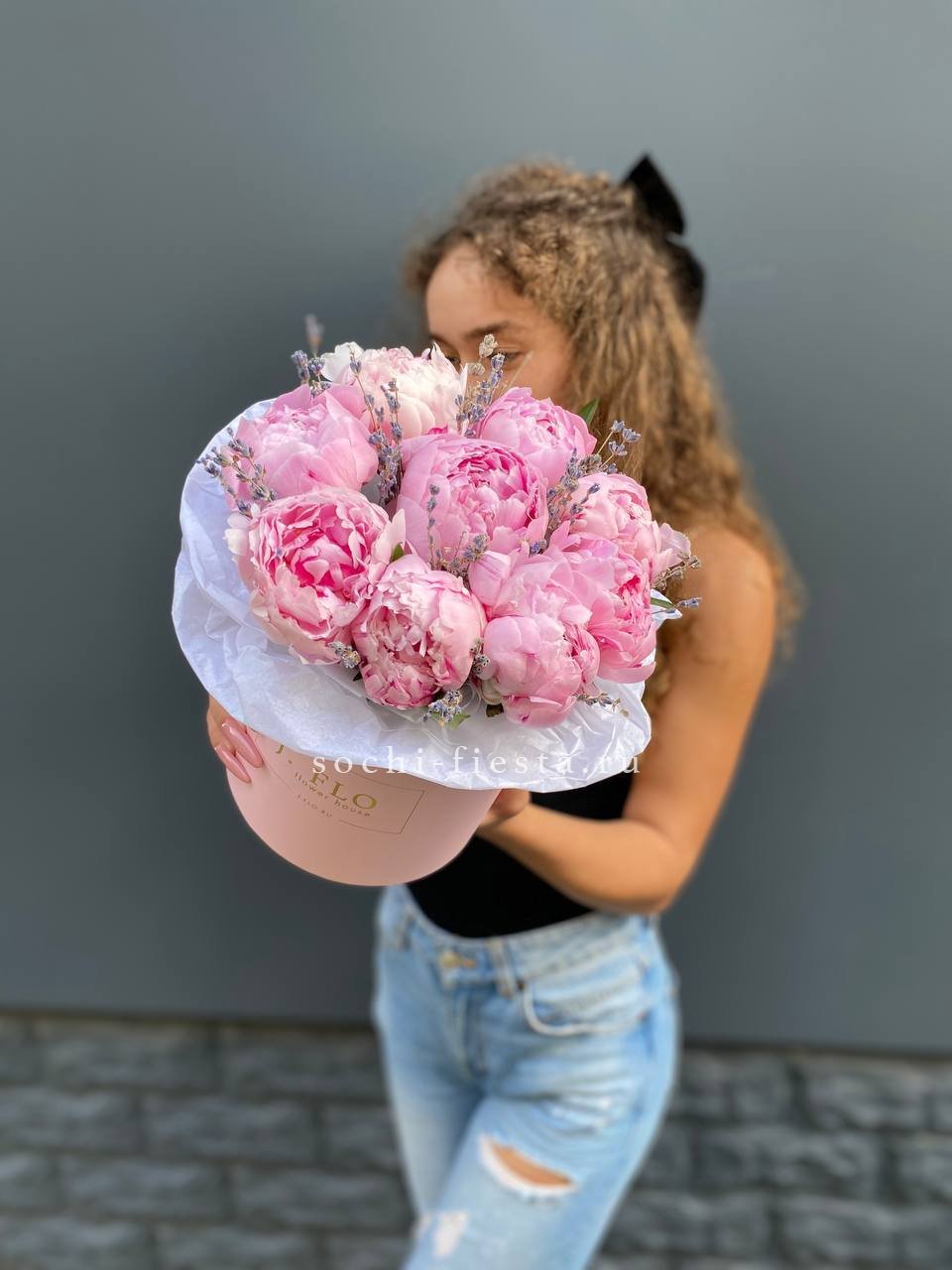 9 пионов, лаванда, цилиндр D16.