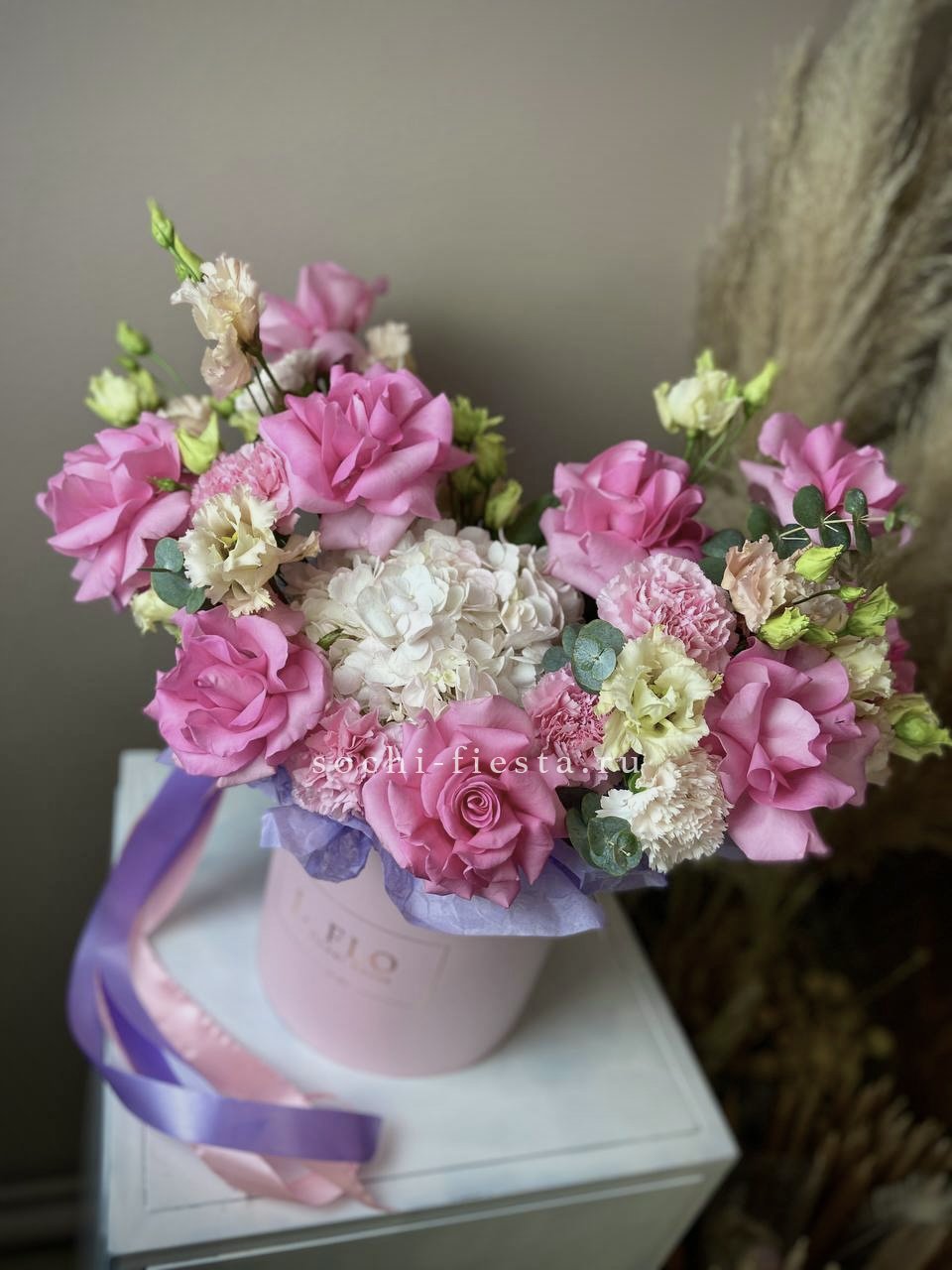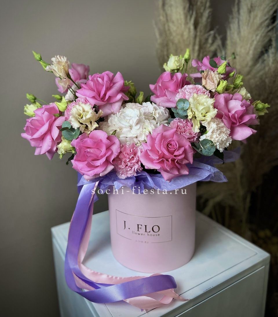 розы, альстромерии, хризантемы, диантусы, цилиндр D13,оазис, тишью.