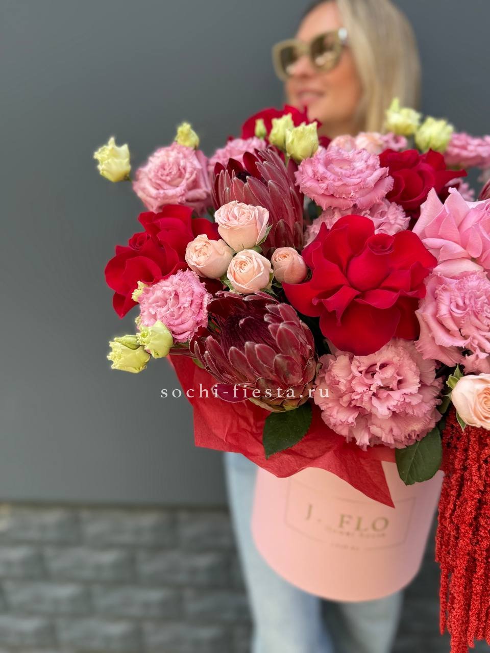 кустовая роза, лилия, диантус, лотос, эвкалипт, бокс 13.