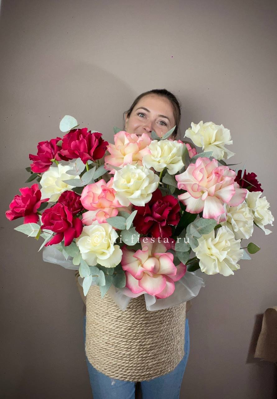 Для заказа товара "35 французских роз микс в джутовом боксе" с доставкой в Нальчике нажмите в корзину