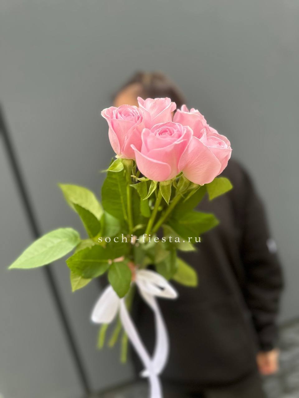 розовая роза -5 шт, лента. Данная цена доступна при единовременном заказе от 10 шт.