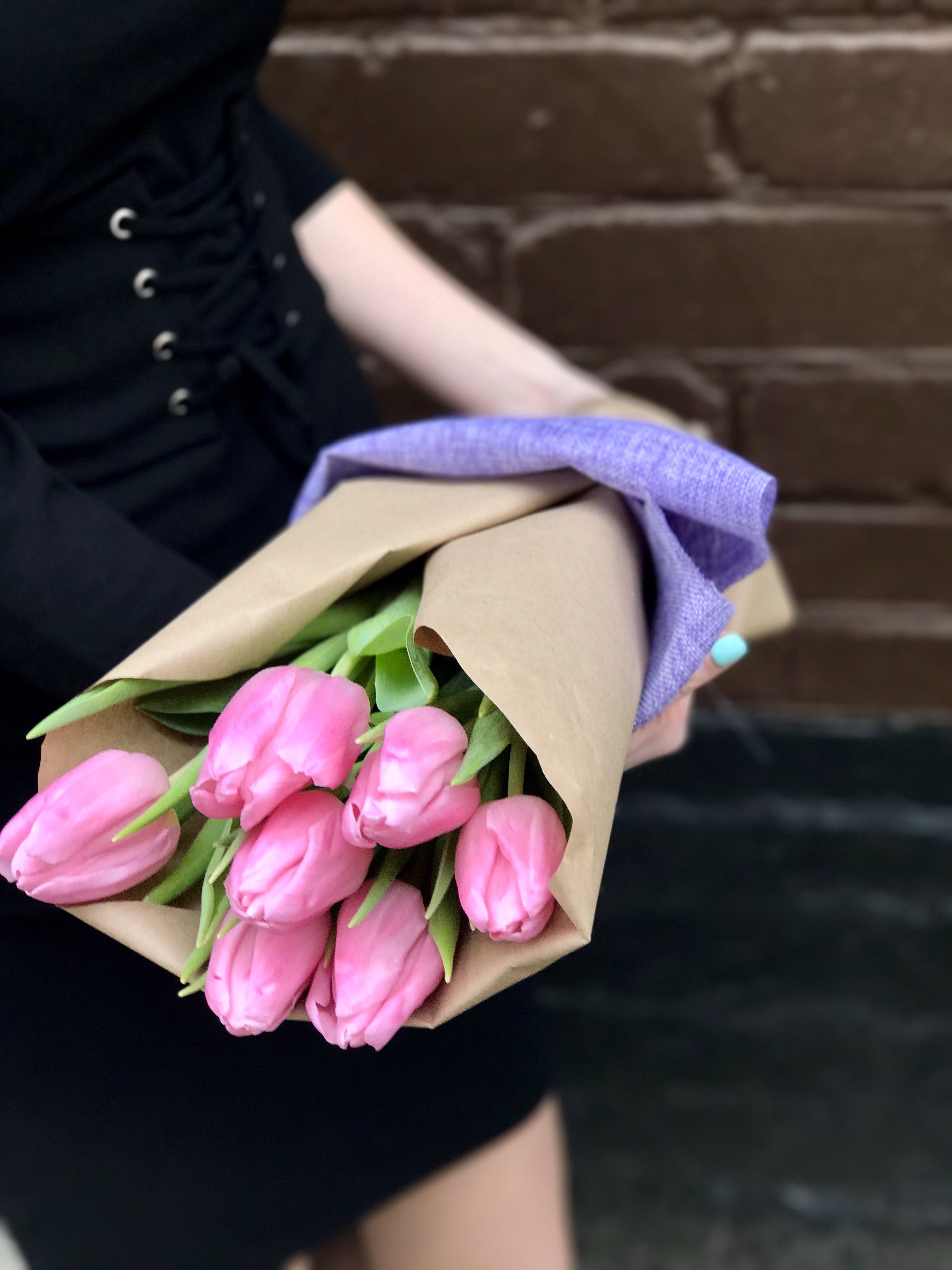 Девятнадцать тюльпанов создают ощущение весеннего утра и первых по-настоящему тёплых дней. Лёгкая упаковка сохраняет естественность линий и свежесть момента.