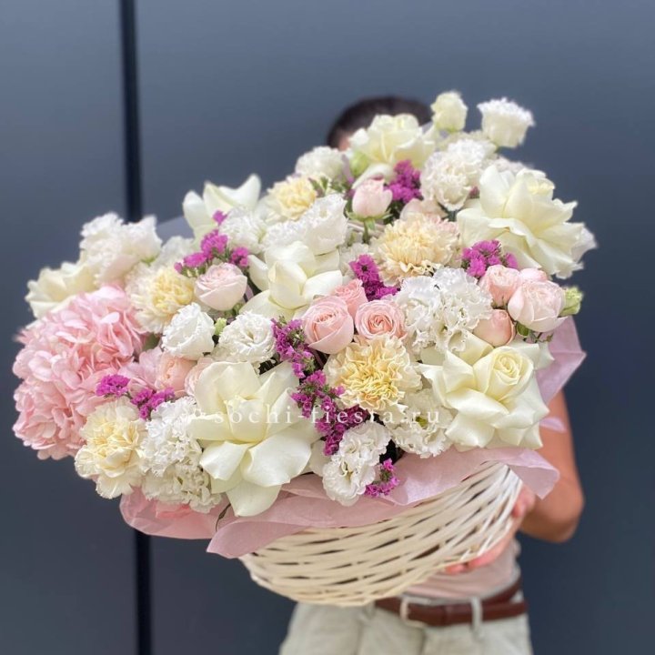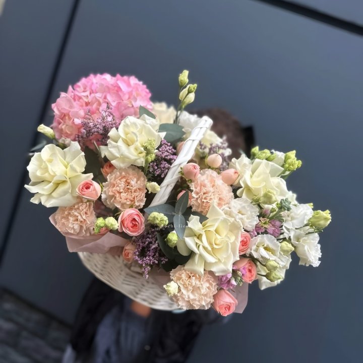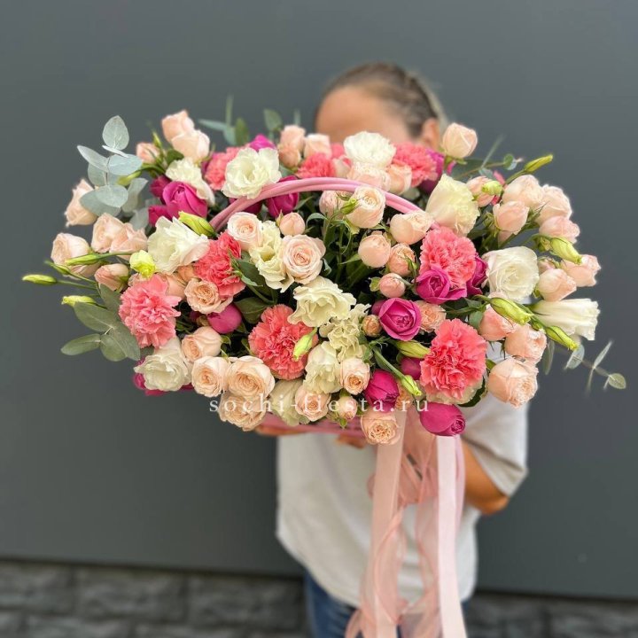 Каждый сезон приносит в Нальчике свой ассортимент корзин. Весной флорист создаёт корзины с тюльпанами и нарциссами — лёгкие, нежные, полные ощущения обновления. В мае-июне приходят пионы — Sarah Bernhardt, Bowl of Cream, Red Charm — главный флористический праздник. Осенью — хризантема в тёплых гаммах с декоративными ягодами и ветвями. Зимой — хвойные аранжировки с амариллисом для праздничной атмосферы.