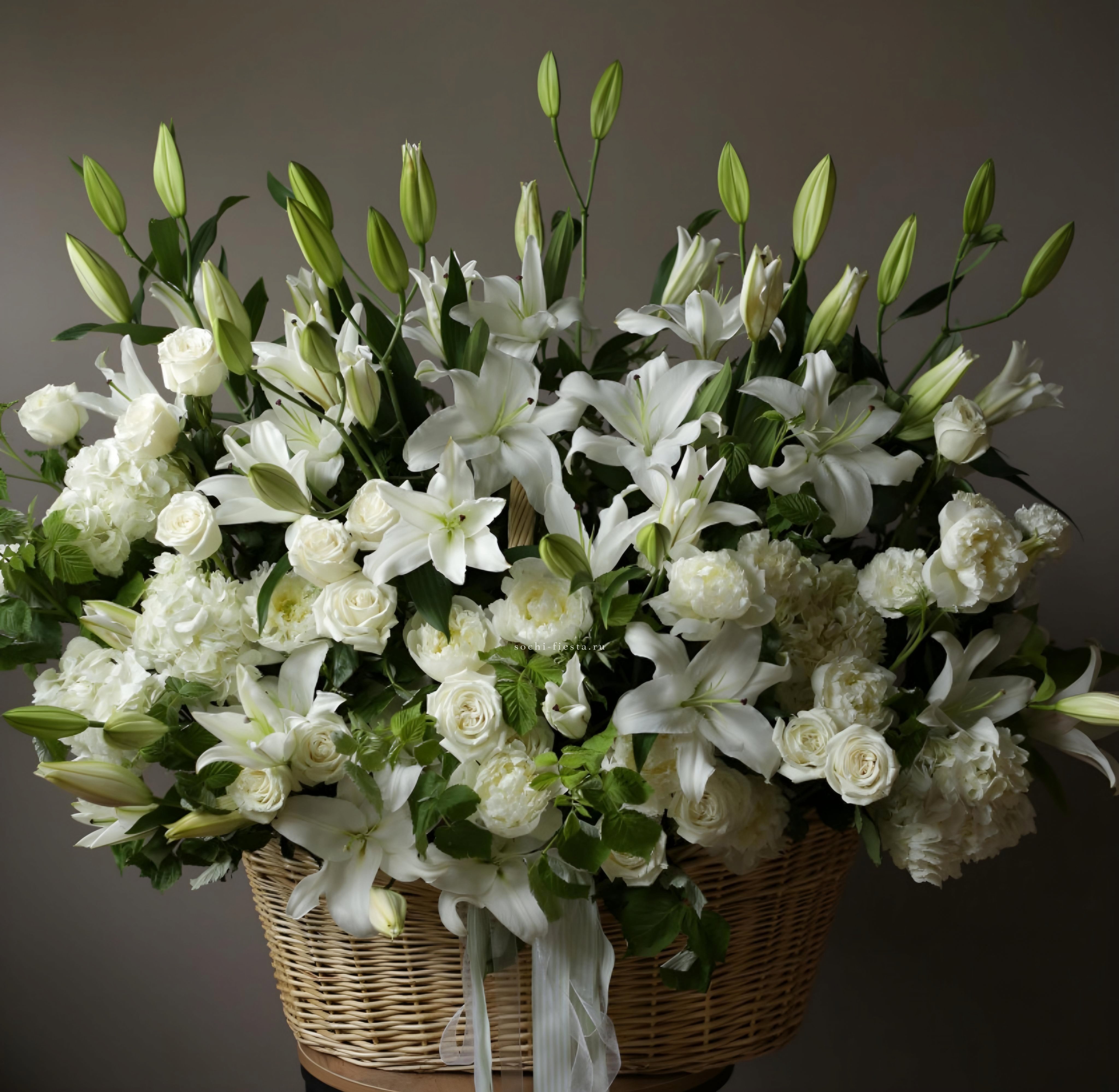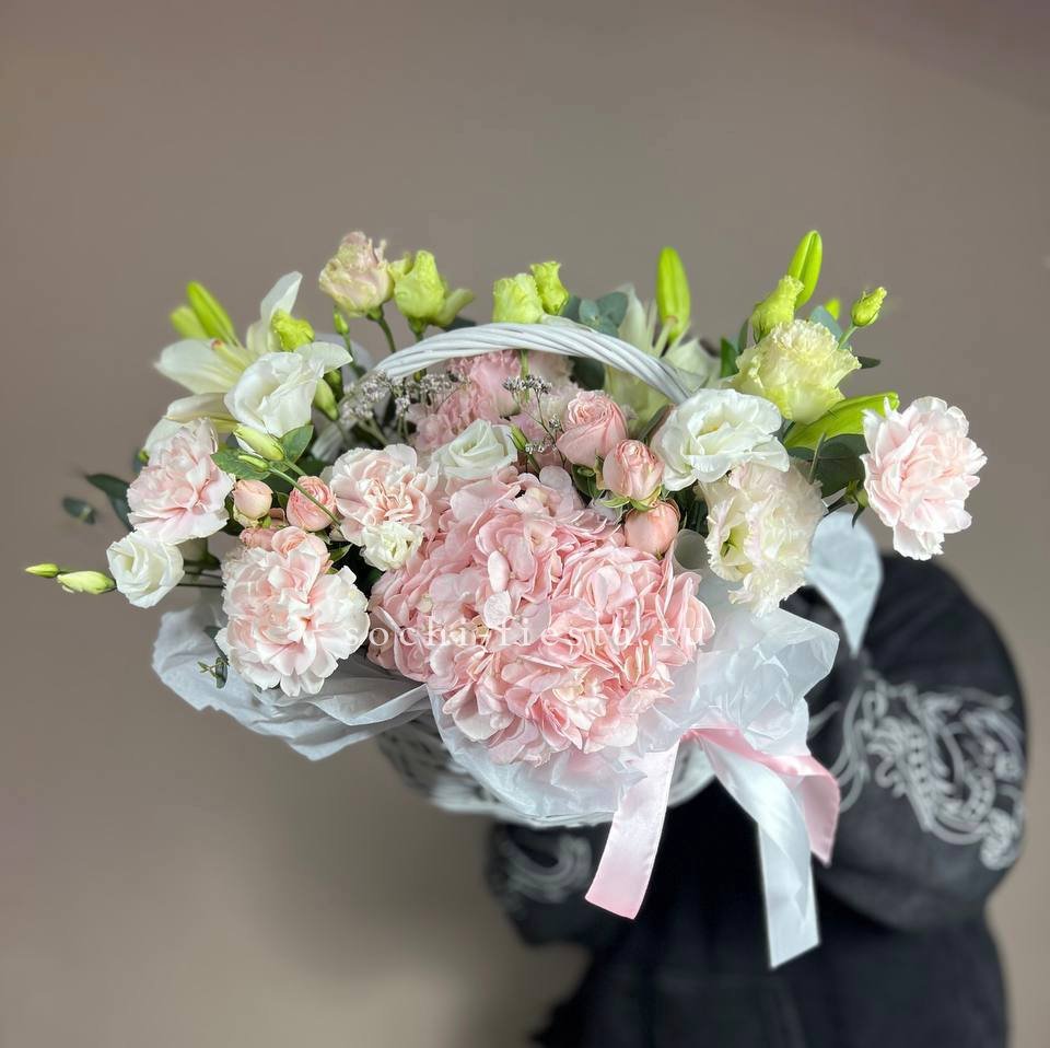 Цветочная корзина из пионов и пионовидных роз "Перфекте"
