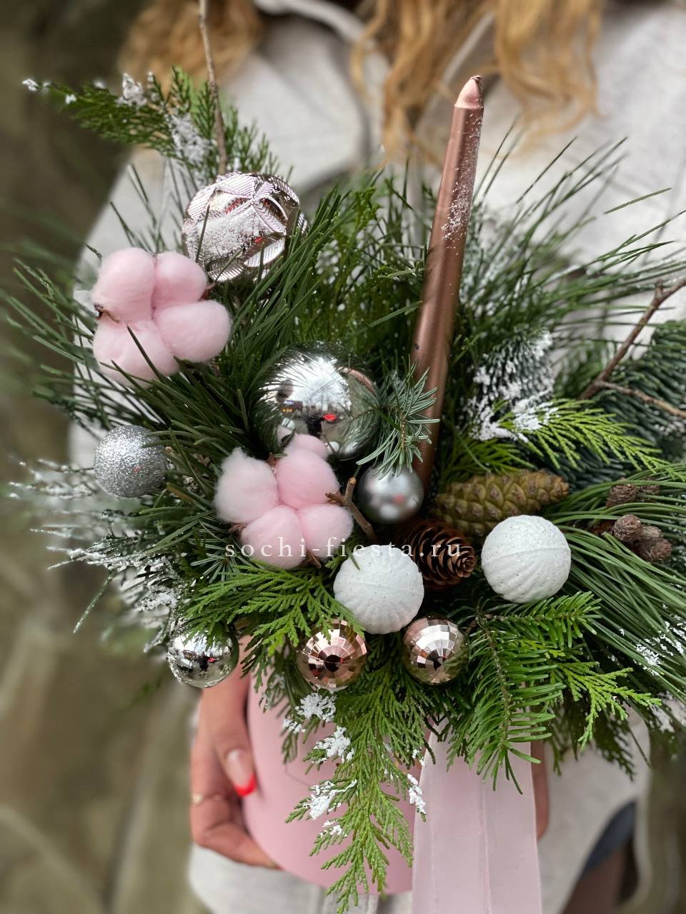 Новогодняя композиция в коробке пинк