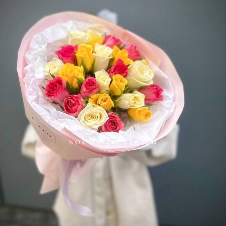 Мы работаем только со свежими цветами — букеты радуют от 7 до 14 дней и дольше при правильном уходе.