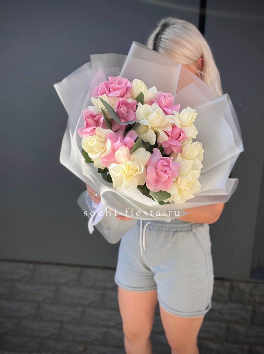 Для заказа товара "15 бело-розовых роз" с доставкой в Нальчике нажмите в корзину