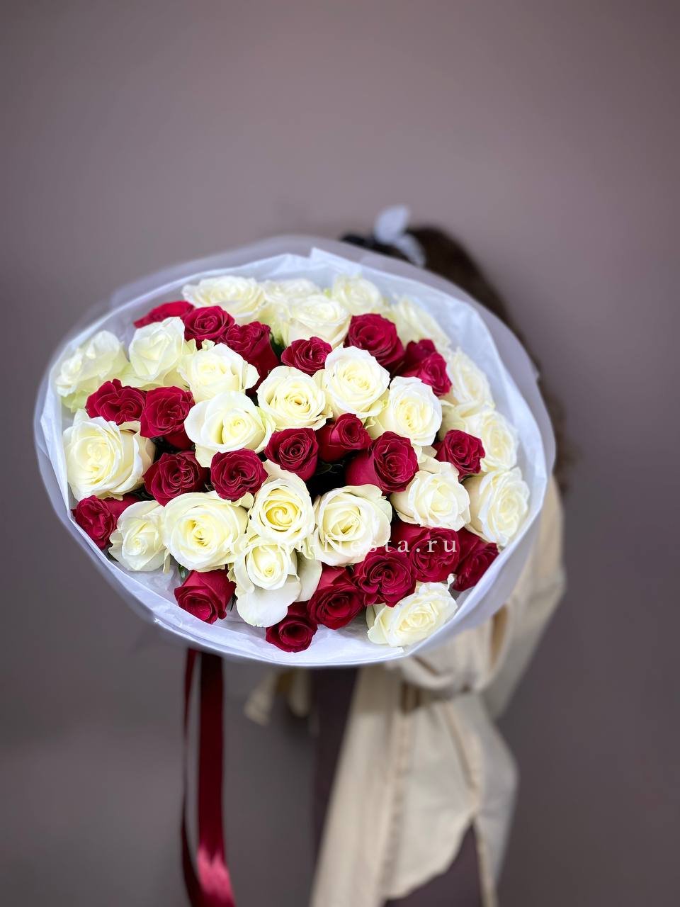 Для заказа товара "Букет из красных белых 45 роз" с доставкой в Нальчике нажмите в корзину