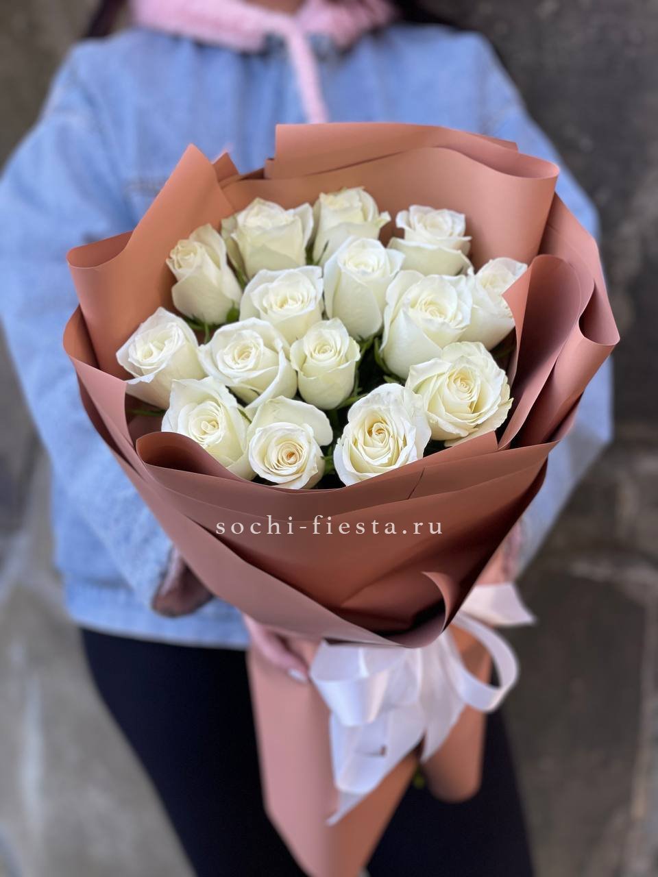 белые розы 35 шт., лента, упаковка на выборВы можете выбрать любое количество.