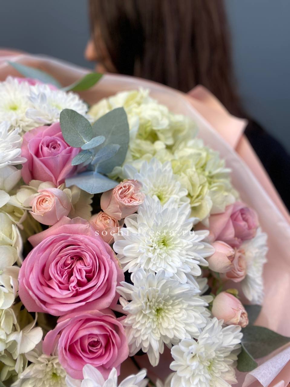 гортензия, кустовые хризантемы, герберы, маттиола, диантусы и лимониум.