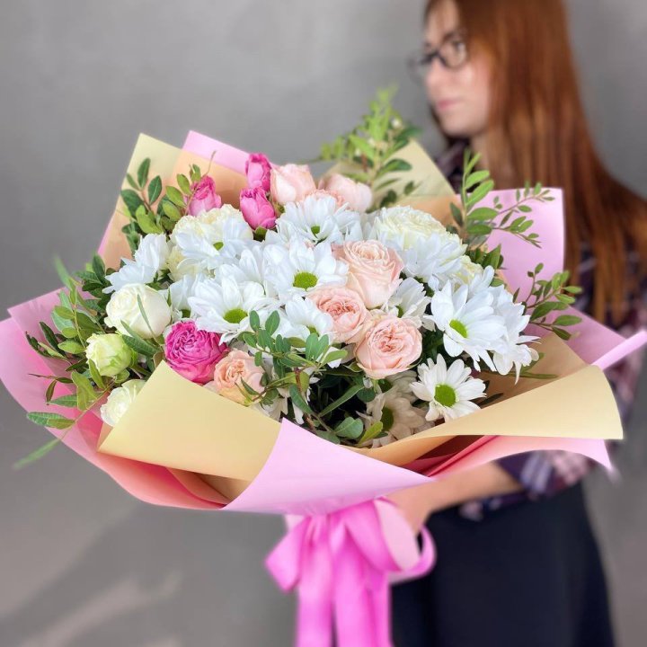 На первом месте стабильно розы. Дальше — пионы в сезон, тюльпаны к 8 марта, кустовые хризантемы осенью. Авторские миксы с эвкалиптом растут в популярности последние годы, особенно у молодой аудитории.